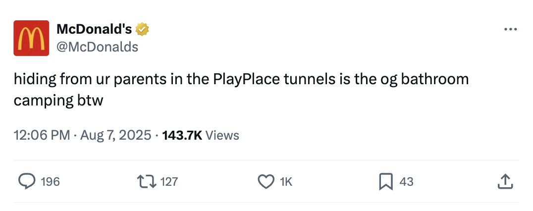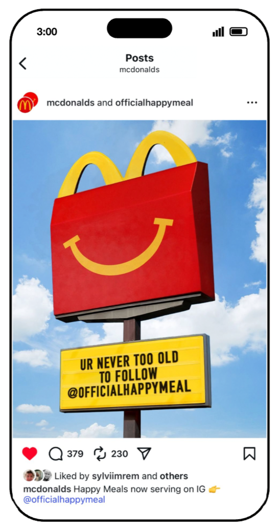 SocialsWritten by a fan for a fan. We gave Happy Meals a digital home. A place to talk with fans, in their language. Standing out through our unhindged-ness. All while keeping a consistent tone on all accounts.